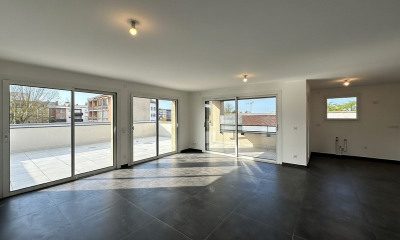 Num ambiente calmo, beneficiando de uma bela vista e orientação sul apartamento177,06 m², construído em 2000, num edifício de 5 andares tem 5 assoalhadas das quais 5 quartos, 1 casa de banho e 3 WC. Ele e composto duma sala de estar 77,12 m², duma cozinha Americana, dum terraço e de 3 garagens. Ele está situado no quinto andar com elevador. Aquecimento : Radiador a gás coletivo.