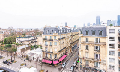 Com orientação norte apartamento87,5 m², construído em 1950, num edifício de 6 andares compreende 4 assoalhadas das quais 3 quartos e 3 WC. Ele se compõe duma sala de estar 33 m² e duma cozinha Americana. Aquecimento : Gás coletivo. Diversos : intercomunicador, código de porta.