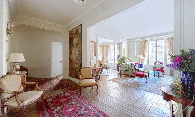Num ambiente calmo, beneficiando de uma bela vista e orientação este apartamento130 m², construído em 1900, num edifício de 6 andares tem 6 assoalhadas das quais 4 quartos, 1 casa de banho e 2 WC. Ele e composto duma sala de estar 25 m², duma sala de jantar 25 m², duma cozinha Americana, duma varanda e duma cave10 m². Renovado, ele está situado no quinto andar com elevador. Aquecimento : Radiador. Diversos : intercomunicador, código de porta, porteiro, parquet, lareira, TV cabo. Honorários : 5.