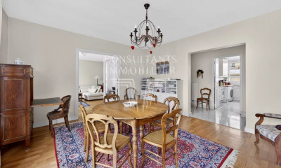 Num ambiente calmo, beneficiando de uma bela vista e orientação sul apartamento100 m², construído em 1970, num edifício de 5 andares tem 4 assoalhadas das quais 2 quartos, 1 casa de banho e 1 WC. Ele e composto duma sala de estar 35 m², duma cozinha Equipada, duma varanda, duma cave e duma garagem. Ele está situado no quarto andar com elevador. Aquecimento : Radiador a gás coletivo. Diversos : intercomunicador, código de porta.