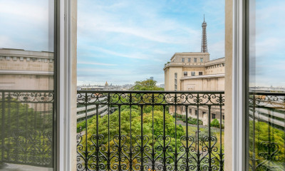 Num ambiente calmo, beneficiando de uma bela vista e orientação sul-este apartamento368,32 m², construído em 1901, num edifício de 6 andares tem 7 assoalhadas das quais 5 quartos, 3 casas de banho e 2 WC. Ele e composto duma sala de estar 72,37 m², duma cozinha Separada, duma varanda e duma cave. Ele está situado no quarto andar com elevador. Diversos : intercomunicador, código de porta, porteiro, parquet.