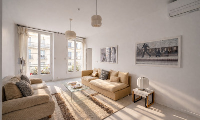 Num ambiente calmo, beneficiando de uma bela vista e orientação sul apartamento79,45 m², construído em 1830, num edifício de 5 andares compreende 2 assoalhadas das quais 1 quarto e 1 WC. Ele se compõe duma sala de estar 34,95 m², duma sala de jantar, duma cozinha Nenhuma e dum terraço. Ele está situado no quinto andar com elevador. Aquecimento : Radiador individual a gás. Diversos : intercomunicador, código de porta, porteiro.