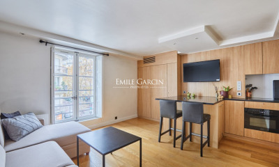 Num ambiente calmo, beneficiando de uma bela vista e orientação este apartamento45,01 m², construído em 1824, num edifício de 4 andares compreende 2 assoalhadas das quais 1 quarto e 1 WC. Ele se compõe duma sala de estar 14,01 m² e duma cozinha Separada. Ele está situado no quarto andar. Aquecimento : Radiador a gás coletivo. Diversos : intercomunicador, código de porta, TV cabo. Honorários : 4.545.