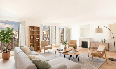 Com orientação norte-este apartamento104 m², construído em 1900, num edifício de 6 andares compreende 4 assoalhadas das quais 2 quartos, 1 casa de banho e 1 WC. Ele se compõe duma sala de estar 18,78 m², duma sala de jantar 16,35 m², duma cozinha Separada e duma cave. Ele está situado no segundo andar com elevador. Diversos : intercomunicador, código de porta, porteiro, parquet, lareira, TV cabo. Honorários : 3.63.