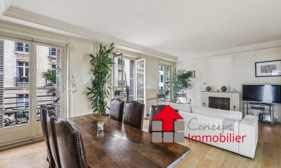Beneficiando de uma bela vista e orientação sul-oeste apartamento154,1 m², construído em 1880 tem 7 assoalhadas das quais 4 quartos, 1 casa de banho e 2 WC. Ele e composto duma sala de estar 22,32 m², duma sala de jantar 19,51 m², duma cozinha Nenhuma e duma cave11,91 m². Ele está situado no quarto andar com elevador. Aquecimento : Radiador individual a gás. Diversos : intercomunicador, código de porta, porteiro, parquet, lareira, TV cabo. Honorários : 3.947.