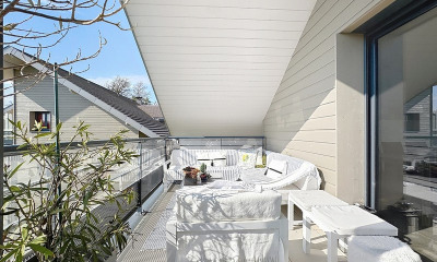 Beneficiando de uma bela vista e orientação sul-oeste apartamento94 m², construído em 2012, num edifício de 3 andares tem 4 assoalhadas das quais 3 quartos, 1 casa de banho e 2 WC. Ele contém uma sala de estar 36,82 m², uma sala de jantar, uma cozinha Americana, uma varanda, um terraço, 2 garagens, uma cave e uma garagem. Ele está situado no segundo andar com elevador. Aquecimento : Radiador a gás coletivo.