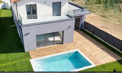 Num ambiente calmo, beneficiando de uma bela vista e orientação sul-oeste moradia/ mansão121 m², construída em 2024, com um terreno de 392 m² compreende 4 assoalhadas das quais 3 quartos e 2 WC. Ela se compõe duma sala de jantar, duma cozinha Americana equipada, duma piscina, dum terraço, duma garagem e de 2 parques de estacionamento. Aquecimento : Ar condicionado reversível individual.