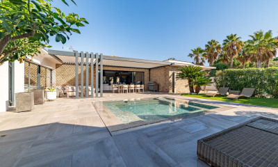 Num ambiente calmo, com orientação sul moradia/ mansão (Villa) 220 m², construída em 1986, com um terreno de 980 m² compreende 5 assoalhadas das quais 4 quartos, 1 casa de banho e 2 WC. Ela se compõe duma cozinha Americana equipada, duma piscina, dum terraço, de 2 garagens, duma cave e de 4 parques de estacionamento. refeita em totalidade. Aquecimento : Ar condicionado reversível.