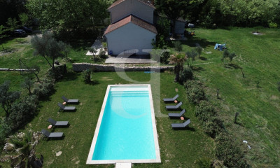 Com orientação sul moradia/ mansão148 m², com um terreno de 760 m² tem 5 assoalhadas das quais 4 quartos, 1 casa de banho e 3 WC. Ela e composta duma sala de estar 50 m², duma cozinha Separada equipada, duma piscina e de 2 parques de estacionamento. Aquecimento : Gás coletivo.