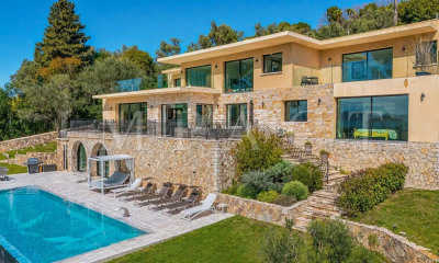 Mougins - Notre-Dame-de-vie. Numa área verde de cerca de 2300 m2 com piscina, moradia familiar de 350 m2.<BR>Rés do chão: sala de estar com lareira, vigas expostas, sala de jantar com parede de pedra, cozinha equipada em plano aberto, pátio no centro da moradia com magníficas plantas tropicais, terraço protegido com vista para o mar, virado a sul. Suite principal ,Quarto de hóspedes<BR>No andar de cima, uma suite principal com terraço com vista para o mar e para a antiga aldeia de Mougins. 2 outros quartos e 2 casas de banho em mármore que se abrem para um terraço com vista para um jardim mediterrânico com vinhas e oliveiras e para a casa de Picasso. Estúdio independente<BR>Oficina. Lavandaria. Adega. garagem. parqueamento para dois veículos.<BR>A 1 km de lojas e restaurantes. A 15 minutos das praias da Croisette e a 30 minutos do aeroporto de Nice.