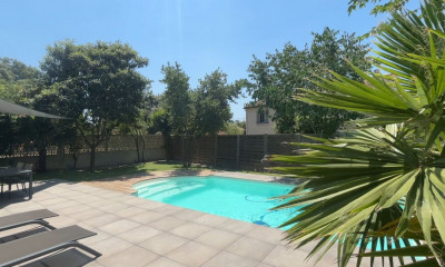 Num ambiente calmo, moradia/ mansão160 m², com um terreno de 500 m² compreende 6 assoalhadas das quais 4 quartos e 2 WC. Ela se compõe duma sala de estar, duma cozinha Nenhuma, duma piscina, duma cave e de 2 parques de estacionamento. Aquecimento : Ar condicionado reversível. Honorários : 4.14.