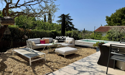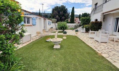 Com orientação sul moradia/ mansão (Villa) 134 m², construída em 1985, com um terreno de 2600 m² tem 4 assoalhadas das quais 3 quartos, 1 casa de banho e 2 WC. Ela e composta duma sala de estar, duma cozinha Americana equipada, duma piscina, dum terraço, duma garagem e de 8 parques de estacionamento. Aquecimento : Individual elétrico.