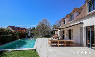 Com orientação sul moradia/ mansão205 m², construída em 1975, com um terreno de 1006 m² compreende 9 assoalhadas das quais 5 quartos, 1 casa de banho e 2 WC. Ela se compõe duma sala de estar 80 m², duma cozinha Americana equipada, duma piscina, dum terraço, de 2 garagens e de 2 parques de estacionamento. Aquecimento : Individual gás.