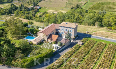 No coração do Beaujolais, a 15 km de Villefranche-sur-Saône. Propriedade de charme com 580 m², totalmente renovada, situada nas proximidades de uma encantadora vila turística na rota dos vinhos. A casa principal, com entrada privativa e área de 200 m², oferece um ambiente de vida muito agradável, composto por hall de entrada, sala de estar acolhedora com lareira de época, uma bela cozinha moderna totalmente equipada, três quartos espaçosos, duas casas de banho e sótão aproveitado. Anexa à casa encontra-se uma grande casa de hóspedes independente com cerca de 380 m², classificada com 4 estrelas, ideal para receber hóspedes e/ou organizar seminários num ambiente funcional e extremamente confortável. Inclui cinco quartos, três deles com casas de banho privativas com duche, uma casa de banho com duche independente, uma ampla cozinha equipada, duas varandas fechadas transformadas em sala de descanso e espaço de refeições, duas salas de seminários de 70 m² cada, adequadas para eventos familiares, reuniões profissionais ou retiros de yoga, bem como uma bela adega típica do Beaujolais, ideal para a organização de provas de vinho. O conjunto está implantado num terreno arborizado de quase 8.700 m², com uma magnífica área de piscina com várias esplanadas de verão, um espaço de jacuzzi coberto, um forno de pão funcional e dois parques de estacionamento que facilitam o acesso e o estacionamento. Possibilidade de criação de dois quartos de hóspedes adicionais. Acesso à autoestrada A6 a 12 km, Villefranche-sur-Saône a 15 km, estação TGV de Mâcon a 30 minutos, centro de Lyon a 45 minutos.