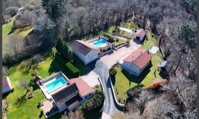 Située au cœur d'un environnement vallonné et préservé, cette belle demeure en pierre de 380 m² habitables séduit par sa luminosité, son caractère authentique et sa situation particulièrement privative, à proximité de la charmante ville de Brantôme. Élevée sur deux niveaux et couverte d'une toiture en tuiles canal, la maison a fait l'objet d'une rénovation soignée, mettant en valeur ses volumes généreux, ses matériaux nobles et ses éléments anciens.