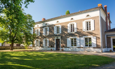 Située dans un charmant village, cette demeure d'exception offre un cadre privatif unique, entièrement clos de murs et de haies, où nature et commodités se côtoient harmonieusement. En franchissant un imposant portail en fer forgé, on découvre une élégante propriété du XIXème siècle orientée est-ouest, empreinte de caractère et d'histoire. Élevée sur deux niveaux, la maison principale dévoile au rez-de-jardin ses pièces de vie spacieuses, tandis que l'espace nuit occupe le premier étage. Sa façade, rythmée par des fenêtres aux encadrements en pierre et linteaux à auvent, met en valeur son charme ancien. L'escalier central, doté d'une rampe en fer forgé, témoigne du style de son époque. Le logis central, enduit avec des moellons d'angle apparents, est coiffé d'une toiture en tuiles plates agrémentée de deux fenêtres de toit. Deux bâtisses attenantes, de plain-pied, situées au nord et au sud de la maison principale, complètent l'espace habitable pour une surface totale d'environ 510 m². Ces constructions, réalisées en pierre avec un enduit et des toitures en tuiles canal de Gironde, s'intègrent harmonieusement au domaine. La symétrie parfaite des lieux est accentuée par deux pigeonniers situés de part et d'autre de la maison principale. Au nord-est de la cour, une maison annexe et un double garage offrent des espaces supplémentaires. À l'arrière, le parc arboré accueille un jardin paysager, une piscine, un pool house, et constitue un véritable havre de paix. Cette propriété allie caractère architectural, confort moderne, et cadre naturel exceptionnel.