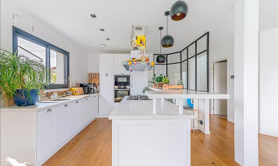 SES PRESTATIONS HAUT DE GAMME : Vide sanitaire, tout à l’égout, huisseries Alu double vitrage, volets centralisés, domotique, chauffage sol électrique et clim réversible dans les chambres, cheminée éthanol, aspiration centralisée, alarme, fibre, store banne électrique, système sono extérieur et extérieur, portail automatique, visiophone…