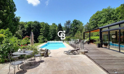 Une grande terrasse s'étend devant la maison, accompagnée d'une superbe piscine, véritable invitation à la détente. Un espace abrité avec barbecue vous permettra de prolonger les soirées dans une ambiance conviviale et chaleureuse. La piscine peut être couverte grâce à une terrasse coulissante, apportant un confort supplémentaire.