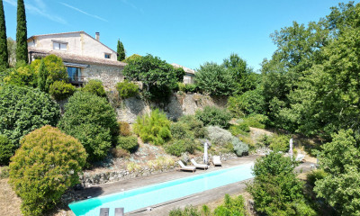 Le rez-de-chaussée se distingue par une entrée offrant une vue imprenable sur la vallée, un grand hall lumineux, trois salons, une bibliothèque, une salle à manger en enfilade, et une cuisine fonctionnelle accompagnée de plusieurs espaces de rangement. Les étages, accessibles par trois escaliers, abritent côté sud cinq chambres spacieuses avec vue sur la terrasse, tandis que côté nord se trouvent un bureau, trois petites chambres et plusieurs salles de bains. Une chambre spacieuse, située dans le pavillon d’entrée, dispose d’une cheminée d’époque en pierre et brique ainsi que d’une salle de bain attenante. L’ensemble est complété par des parquets raffinés, de nombreux rangements et deux greniers.