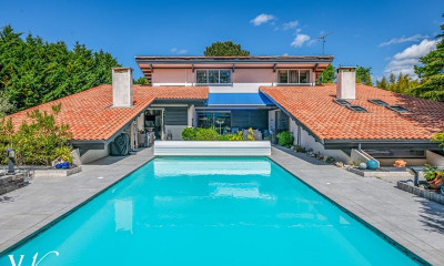 Nichée dans un écrin de verdure, à l'abri des regards, cette magnifique propriété offre un cadre de vie rare, alliant calme absolu, proximité du lac, et lumière naturelle omniprésente grâce à ses grandes baies vitrées et son exposition idéale. Un véritable havre de paix, dans l'environnement privilégié du golf de Biscarrosse.
