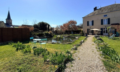 À l'extérieur, le jardin paysagé prolonge naturellement cette harmonie, avec une terrasse minérale tournée vers les fins de journée et une piscine chauffée qui accompagne les journées estivales. Une maison de charme rénovée avec piscine, pour habiter la Bourgogne avec douceur.