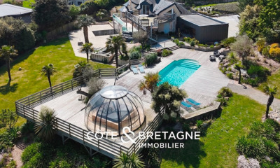 À l'abri des regards, cette demeure de prestige s'ouvre pleinement face à l'horizon, offrant une vue spectaculaire et dominante sur la mer et l'île de Bréhat. Un cadre rare et recherché, où calme, lumière et nature composent un art de vivre unique.