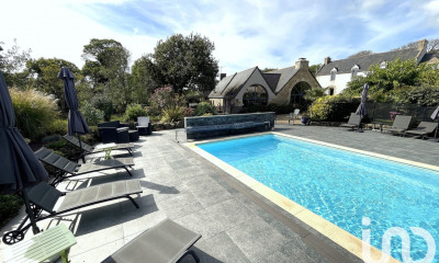 Le rez-de-chaussée s'ouvre sur une vaste entrée menant à un séjour double d'environ 50 m², sublimé par une cheminée et de larges ouvertures sur l'extérieur. La cuisine spacieuse, conçue comme un véritable espace de vie, est complétée par une arrière-cuisine et une buanderie, alliant esthétisme et fonctionnalité.