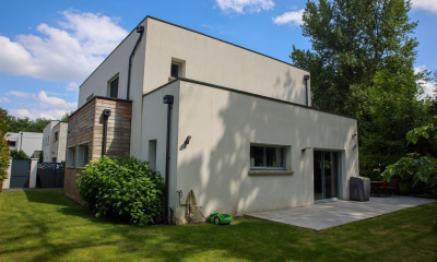 Au rez-de-chaussée, la maison s'ouvre sur une entrée avec vestiaire, complétée par une buanderie ou une cuisine d'été, en lien direct avec le jardin, idéale pour la vie quotidienne comme pour les réceptions aux beaux jours.