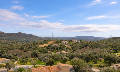 Implantée sur une parcelle d’environ 2 500 m², la villa est entourée d’un jardin méditerranéen aux allures de maquis : pins maritimes, oliviers, genévriers, immortelles ou encore arbousiers rythment les espaces et diffusent leurs parfums, pour une ambiance apaisante et typiquement insulaire.