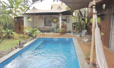 La maison principale, de plain-pied, offre près de 170 m² habitables. Un vaste séjour de 62 m² s’ouvre sous un plafond en chêne créole, haut et chaleureux, témoin d’un savoir-faire disparu. La grande cuisine, d’environ 26 m², garde l’âme conviviale des maisons où l’on aimait recevoir. Deux chambres climatisées, un bureau, une salle de bain et des toilettes séparées composent un intérieur élégant, équilibré, authentique. Un garage double, une buanderie et de grands rangements viennent compléter l’ensemble.