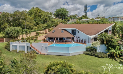 SCHOELCHER, Charmante villa F5 de 271 m² dont 160 m² de superficie habitable, au style architectural moderne / contemporain. Elle est située dans un secteur très recherché à seulement 3 mins de Cluny faisant partie du triangle d'Or, proche de toutes les commodités (commerces, écoles maternelle / primaire à 50 m, lycées et commerces comme Carrefour à environ 3 mins en voiture).