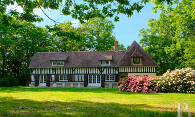 A 1h50 de Paris, 18 mn de Bernay et 25 mn de Lisieux, cette belle maison datant pour une part du XVIIème siècle et transformée au XIXème, typique par ses façades en briques, en pierres et en essentage d'ardoises, est nichée dans son parc de plus de 3.000 m², agréablement arboré et entièrement clos de murs et de haies denses.