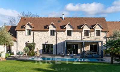 Derrière ses murs de pierre de taille et moellons, enlacés par la vigne vierge, s'étend une demeure principale de 290 m², enrichie de dépendances élégantes : une maison d'amis indépendante, un poolhouse avec piscine couverte, deux garages, un bûcher, un box pour cheval et quelques vestiges agricoles pleins de charme.