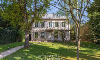 Ravissante villa Belle Epoque, 7 pièces ; 280 m² de dépendances, son parc romantique de 4620 m² bordé d’une rivière. La campagne à la ville ! Parking 100 m². Au calme. Banlieue sud Paris (91)
