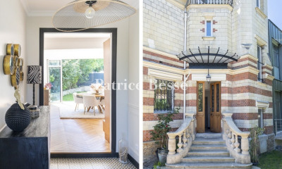 À Paris, dans le 17e arrondissement, rue Legendre, une grande maison bourgeoise, avec jardins d'été et d'hiver. Dissimulée derrière un immeuble, la maison bourgeoise, qui date de 1886, dévoile un extérieur de caractère. Demeure familiale d'environ 288 m², elle a été à une période récente utilisée comme hôtel meublé, puis réhabilitée dans sa fonction d'origine. Elle a conservé ses attributs d'époque, avec sa façade aux bandeaux de brique alternés blancs et rouges, ornée de vigne vierge, ses baies en arc surbaissé et ses garde-corps en fer forgé. L'accès par un jardin en jouissance privative, de près de 55 m², conduit, passé quelques marches en pierre, à la porte d'entrée en bois et ferronnerie, surmontée de sa marquise d'origine. Le rez-de-chaussée s'ouvre sur une entrée et un dégagement, au sol orné de carreaux de ciment, qui distribuent un salon, une salle à manger, un bureau et une grande cuisine. Les éléments de l'époque de la construction ont été conservés : le parquet à lames droites posé à l'anglaise, les moulures des plafonds et la petite cheminée en marbre. À l'arrière, un jardin d'hiver au sol carrelé, de près de 67 m², entièrement couvert d'une verrière, prolonge la maison et se prête à la détente, en toute saison.