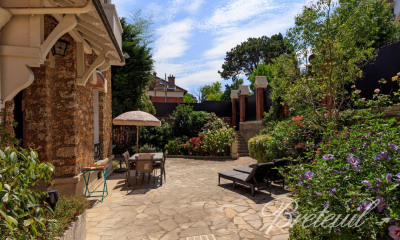 Maison contemporaine de 243 m² utiles (329 m² au sol), au bout d'une allée privée, au calme, non mitoyenne, entièrement rénovée par un architecte, édifiée sur une parcelle de 526 m². Au rez-de-chaussée se trouve un vaste volume de réception de 92m2 comprenant une cuisine ouverte sur l'espace salle à manger, et une partie traversante de salons avec cheminée. Le tout s'ouvre sur la terrasse plein Sud et le jardin paysagé sans vis-à-vis. Une entrée avec penderie et des WC invités complètent ce niveau.