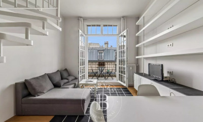 Rue Jacob. Dans l'une des rues les plus prisées de Saint-Germain-des-Prés, au dernier étage d'un bel immeuble avec gardien édifié en 1878, accessible par ascenseur jusqu'au troisième étage, nous vous proposons un appartement charmant et en excellent état de 50,56 m² loi Carrez au cinquième et dernier étage.