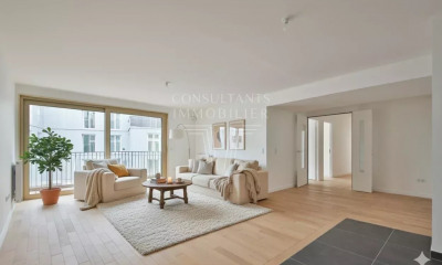 Une composition rare, à la fois verticale et aérienne, qui évoque davantage la structure d'une maison contemporaine que celle d'un appartement urbain.