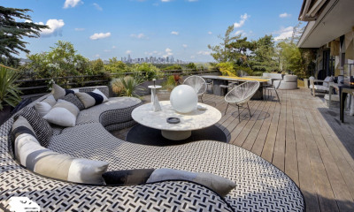 Paris 16ém Quartier Auteuil sud , Ranelagh: Dernière étage , Terrasses , vue imprenable! Goldwelling vous propose un Penthouse de 271m2 d'exception, prolongé par deux terrasses de 144 m² de plain-pied, avec une vue panoramique spectaculaire sur la Tour Eiffel d'un coté et le 'autre coté une vue sur le Bois de Boulogne et la Skyline de la Defense et sans aucun vis-à-vis. Visite virtuelle sur demande . Ce bien rare offre un panorama unique sur les plus beaux monuments de Paris. Dès l'entrée, une galerie élégante mène à une majestueuse triple réception de 120 m² baignée de lumière, ouverte sur un balcon filant de 20 m² avec aussi vues imprenables sur le Bois de Boulogne, La Défense et le Mont Valérien. La suite parentale de 36 m², intime et lumineuse, bénéficie d'un accès direct à une terrasse privée, d'une salle de bains et de toilettes séparées. Trois autres chambres, parfaitement distribuées, disposent chacune de leur espace d'eau : deux avec salles de bains privatives, la troisième attenante à une salle de douche, un hammam et des toilettes invités. Au cœur du bien, une superbe cuisine dînatoire de 37 m², entièrement équipée, s'ouvre sur deux terrasses de 112 m² et 32 m², idéales pour des réceptions ou des moments de détente en toute intimité. Traversant, baigné de lumière grâce à sa double exposition Est/Ouest, ce penthouse offre des prestations haut de gamme : climatisation, finitions raffinées et équipements contemporains. L'appartement est proposé avec ses meubles intérieurs et extérieurs, mais peut également être acquis vide selon vos préférences. Deux caves complètent ce bien d'exception. Estimation des coûts annuels d'énergie (DPE D, 16/04/2023) : entre 3 200 euros et 4 390 euros, abonnements inclus. Charges prévisionnelles : 6 000 euros par trimestre. Prix de l'appartement avec un grand box de parking et : 6 400 000 euros honoraires inclus, dont 4 % à la charge de l'acquéreur . Un studio indépendant de 10 m² au 10e étage au meme niveau avec ascenseur et vue, ainsi que 1 boxes supplémentaire sous-sol, peuvent être proposés en supplément. Visite virtuelle disponible sur demande. Informations sur les risques : ww.georisques.gouv.fr. Le négociateur intervient en tant qu'agent commercial, immatriculé au RSAC de Nanterre sous le numéro 491 627 741. Plus de détails, photos HD et visites virtuelles à 360° disponibles sur le site de l'Agence. Plus de détails, photos HD et visites virtuelles à 360° disponibles sur le site de l'Agence.