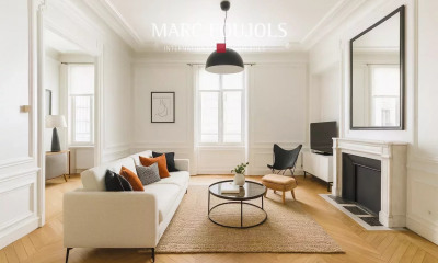 Au quatrième étage d'un immeuble en pierre de taille, occupant tout l'étage, cet appartement d'exception de 314 m² a été intégralement rénové par l'architecte Stéphanie Coutas, qui en a fait un lieu unique, alliant raffinement, modernité et harmonie des matières.