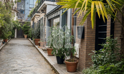 À Paris, dans le 17e arrondissement, rue Legendre, une grande maison bourgeoise, avec jardins d'été et d'hiver. Dissimulée derrière un immeuble, la maison bourgeoise, qui date de 1886, dévoile un extérieur de caractère. Demeure familiale d'environ 288 m², elle a été à une période récente utilisée comme hôtel meublé, puis réhabilitée dans sa fonction d'origine. Elle a conservé ses attributs d'époque, avec sa façade aux bandeaux de brique alternés blancs et rouges, ornée de vigne vierge, ses baies en arc surbaissé et ses garde-corps en fer forgé. L'accès par un jardin en jouissance privative, de près de 55 m², conduit, passé quelques marches en pierre, à la porte d'entrée en bois et ferronnerie, surmontée de sa marquise d'origine. Le rez-de-chaussée s'ouvre sur une entrée et un dégagement, au sol orné de carreaux de ciment, qui distribuent un salon, une salle à manger, un bureau et une grande cuisine. Les éléments de l'époque de la construction ont été conservés : le parquet à lames droites posé à l'anglaise, les moulures des plafonds et la petite cheminée en marbre. À l'arrière, un jardin d'hiver au sol carrelé, de près de 67 m², entièrement couvert d'une verrière, prolonge la maison et se prête à la détente, en toute saison. L'accès aux deux étages se fait par un escalier en bois avec rampe en fer forgé. Au premier, le palier ouvre sur un vaste salon avec une cheminée en marbre, un bureau, une chambre et une salle de bains, tous parquetés. Au second, le palier dessert quatre chambres lumineuses, une salle de bains et des toilettes. L'entresol, accessible par le rez-de-chaussée ou par le jardin d'hiver, ajoute à l'ensemble une belle surface. Il comprend un salon multimédia, une salle de musique, une salle d'eau et une buanderie. La vaste cave voûtée qui occupe tout le sous-sol de la maison laisse deviner l'occupation ancienne, par un négociant en champagne, dont elle a fait l'objet.