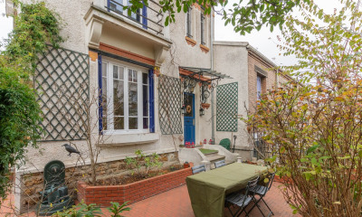 A Pantin, jolie maison d'architecte avec patio (12 m²) et terrasse tropezienne (25 m²), d'une surface totale de 223 m² au sol (205,84 m² Carrez), située dans un quartier agréable à 50 m. du jolie parc Henri Barbusse, rue Cecile Faguet, et à 10 mn du M° Eglise de Pantin et du Canal de l'Ourcq.
