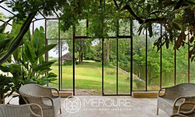 Dès l'entrée, le parc paysager, jalonné d'arbres centenaires, de fleurs colorées et de recoins enchanteurs, offre un spectacle vivant et changeant au fil des saisons. Le calme absolu, sans vis-à-vis, invite à de belles réceptions en extérieur.