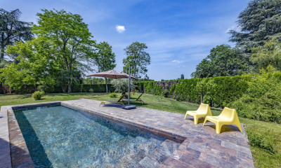 Située dans l’un des environnements les plus privilégiés de la commune, cette demeure emblématique séduit par son cachet, son élégance architecturale et la beauté rare de son parc. Ce dernier, admirablement paysager, déploie une succession d’ambiances poétiques et exotiques : cèdres et séquoias centenaires côtoient palmiers, bananiers et essences rares, composant un écrin de nature unique.