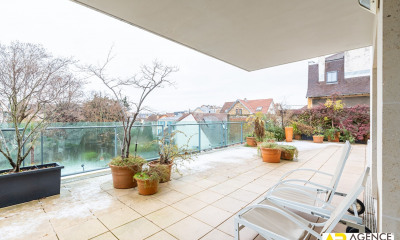 140 m² au niveau du jardin avec 2 grandes terrasses des 2 cotés. Maison soignée impeccable, Véranda, belles matières.
