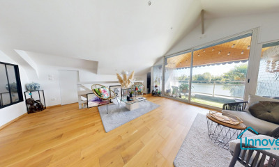 Le niveau principal dévoile un espace de vie d'environ 100 m², littéralement inondé de lumière grâce à de vastes menuiseries et une triple exposition Est / Sud / Ouest, offrant une clarté remarquable tout au long de la journée.