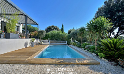 Dès l'entrée, l'élégance et le caractère de la demeure se révèlent. Une sublime entrée distribue les espaces avec harmonie et annonce la qualité des aménagements. Au cœur de la maison, un patio central prolonge les pièces de vie et crée une atmosphère inédite, mêlant lumière, intimité et esprit méditerranéen.