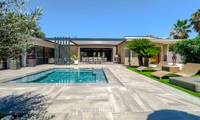 Sur les hauteurs d'un village ancien, à quelques battements d'ailes de Sète, là où le vent transporte l'odeur des pins et le chant discret des cigales, s'élève une villa rare, posée comme un murmure dans le paysage.