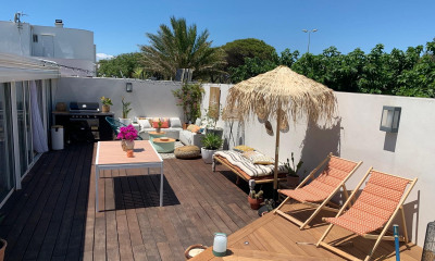 Dès l'entrée, vous serez séduits par une spacieuse pièce de vie baignée de lumière, bénéficiant d'un accès direct à la terrasse, au jardin et à un agréable patio dans un style Hacienda, véritable espace de détente à l'abri des regards. La cuisine équipée, fonctionnelle et conviviale, est complétée par une arrière-cuisine, idéale pour le quotidien.