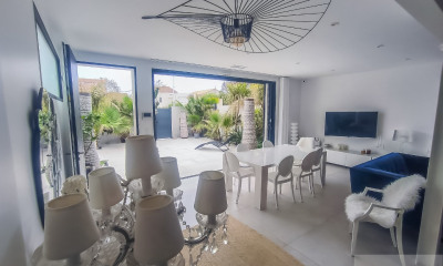 C'est là, dans ce territoire façonné par l'eau et la lumière, où chaque horizon semble raconter une histoire différente, que nous vous invitons à découvrir une villa contemporaine de 165 m², édifiée sur 600 m² de jardin arboré et clos, s'élevant comme une note juste, tenue, parfaitement accordée à son lieu.